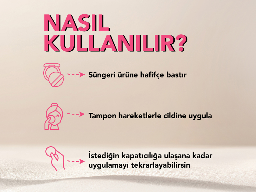 Cushion fondöten kullanmak, geleneksel fondöten uygulamalarından biraz daha farklı ama çok kolay. Adım adım uygulama rehberini takip etmen yeterli: